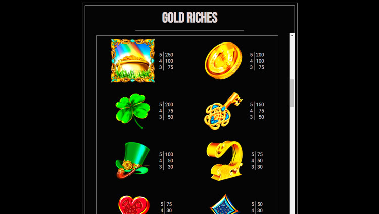 Таблица выплат Gold Riches