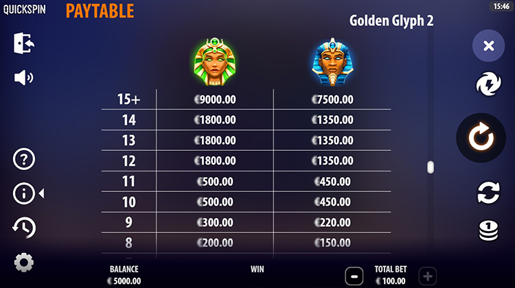 Таблица выплат Golden Glyph 2