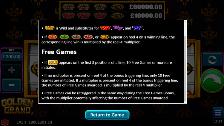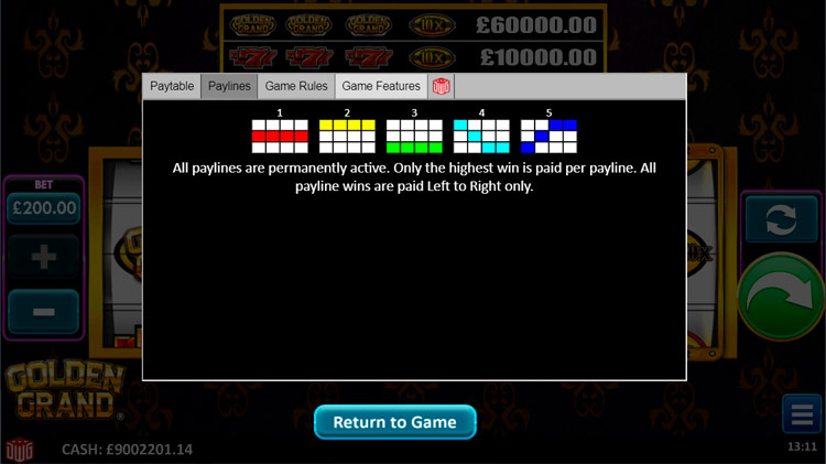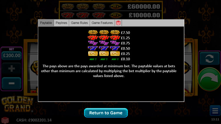 Таблица выплат Golden Grand