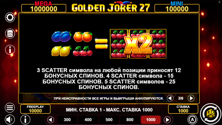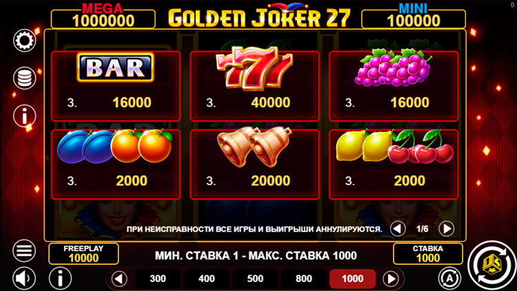 Таблица выплат Golden Joker 27