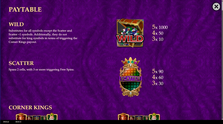 | Герб с короной (Scatter) | 120 | 240 | 360 |