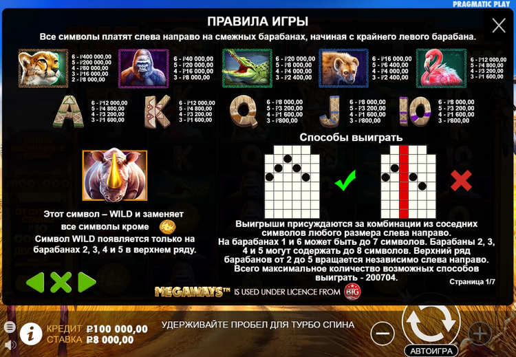 Таблица выплат Great Rhino Megaways