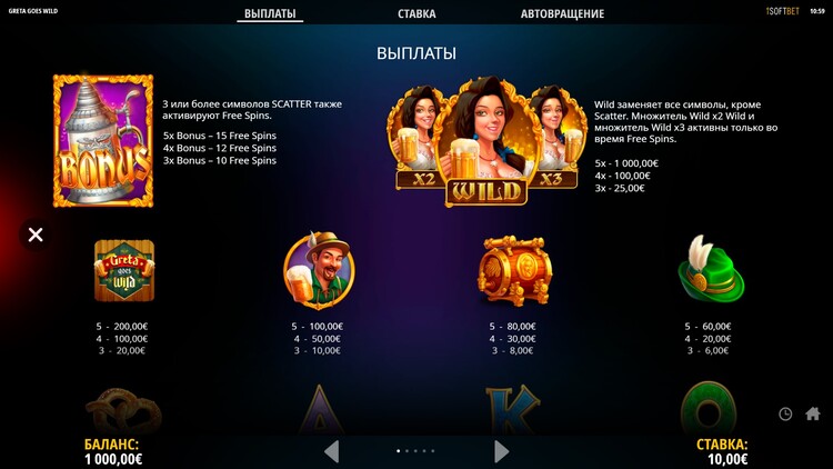 | Официантка (Wild) | 25 | 100 | 1 000 |