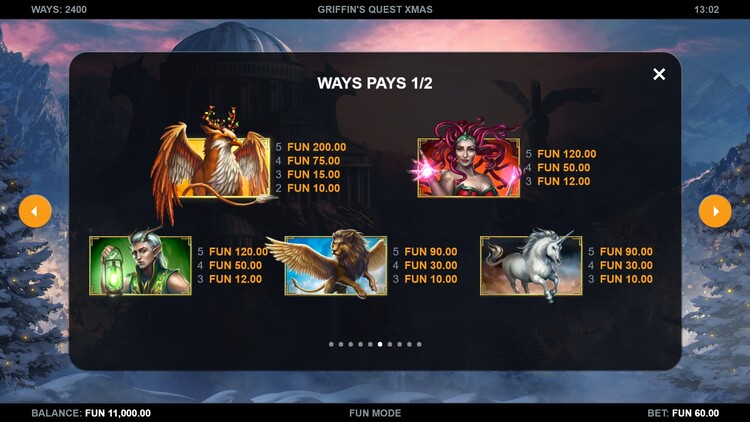 Таблица выплат Griffin’s Quest X-Mas Edition
