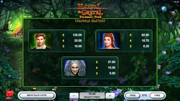 | Гензель | 10 | 25 | 125 | - | - | - |