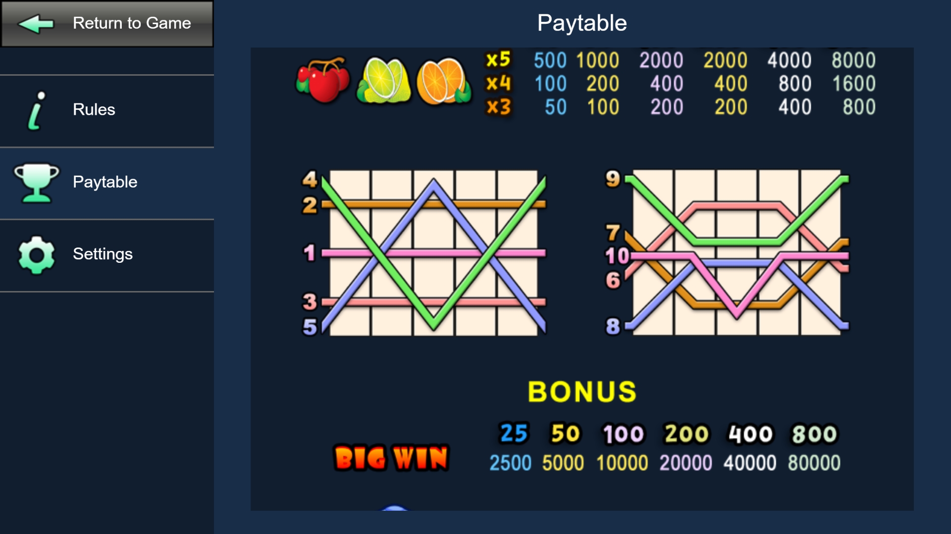 | Вишни, Лимон, Апельсин | 50-800 | 100-1 600 | 500-8 000 |