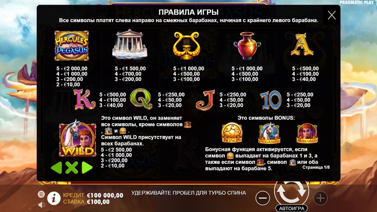 | Геркулес и Пегас (Wild) | 10 | 200 | 1 000 | 2 500 |