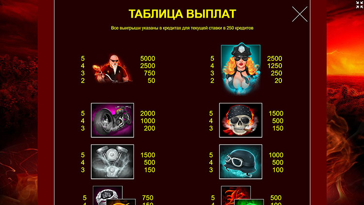 | Байкер | 50 | 750 | 2500 | 5000 |