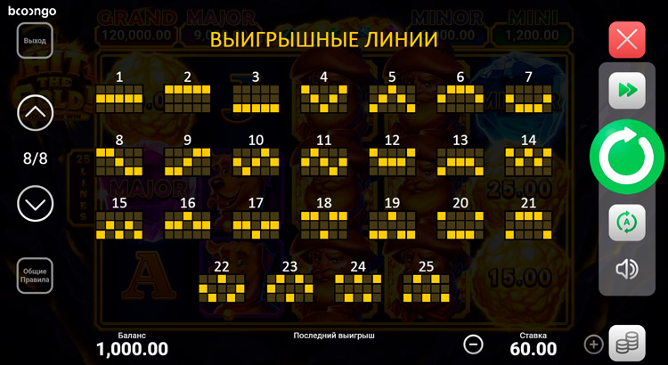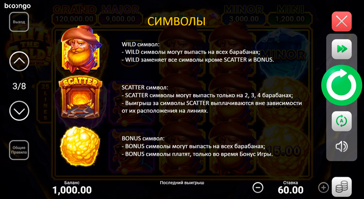 Таблица выплат Hit the Gold! Hold and Win