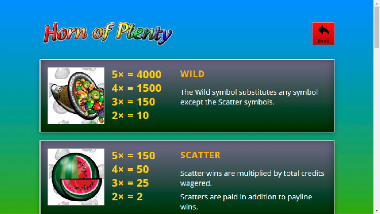Таблица выплат Horn Of Plenty