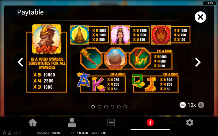 Таблица выплат Immortal Monkey King