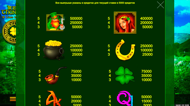 | Лепрекон | 50 000 | 250 000 | 500 000 |