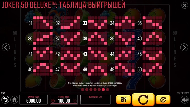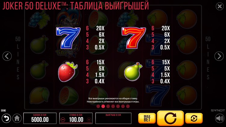 | Джокер (Wild) | 1 | 4 | 15 | 50 |