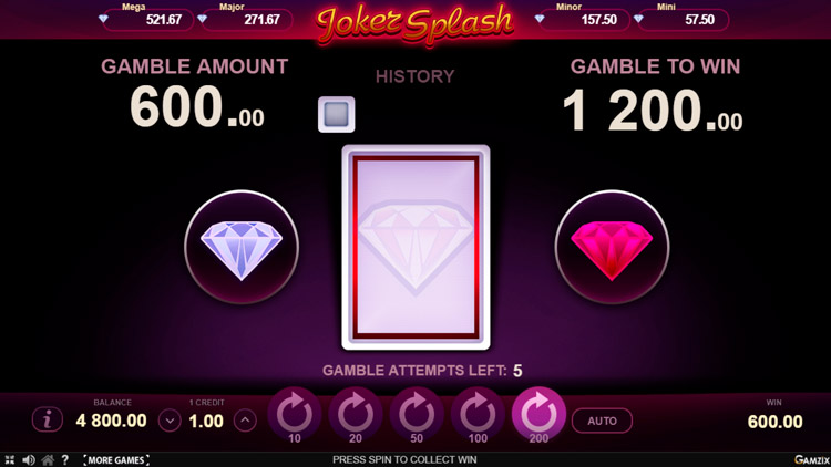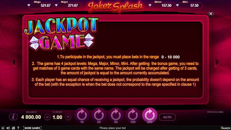 Таблица выплат Joker Splash