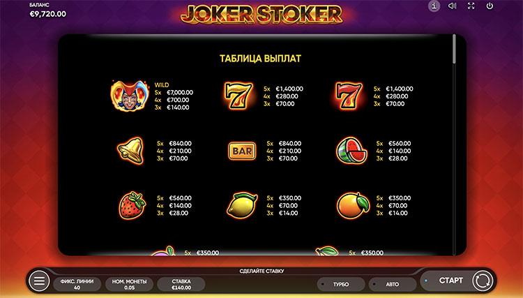 Таблица выплат Joker Stoker