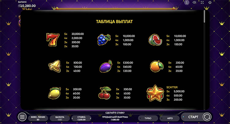 | Звезда (Scatter) | - | 200 | 500 | 5000 |