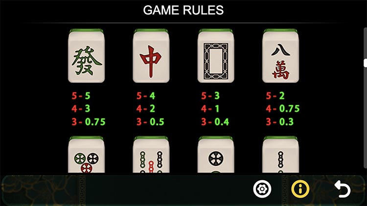| Двойка Бамбуков, Двойка Дотов | 0,1 | 0,25 | 0,5 |