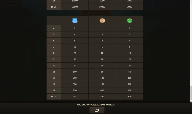 | Жаба, Сова | 1 | 2 | 5 | 10 | 30 | 50 | 200 | 400 | 500 |