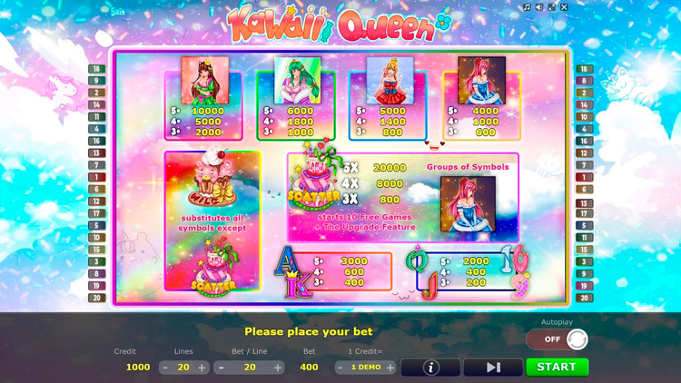 | 9, 10, J, Q | 200 | 400 | 2 000 |