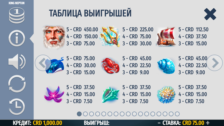 Таблица выплат King Neptun