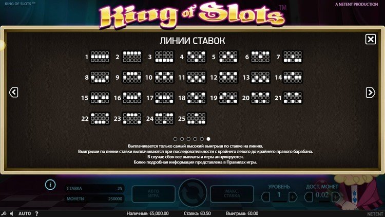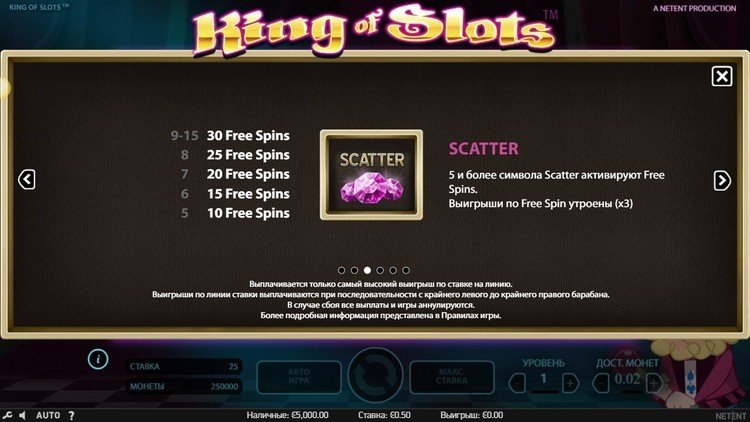 Таблица выплат King of Slots