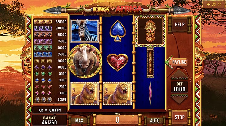 Таблица выплат Kings of Africa