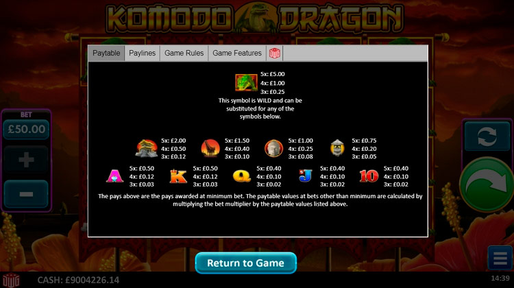 | 10, J, Q | 0,02 | 0,1 | 0,4 |