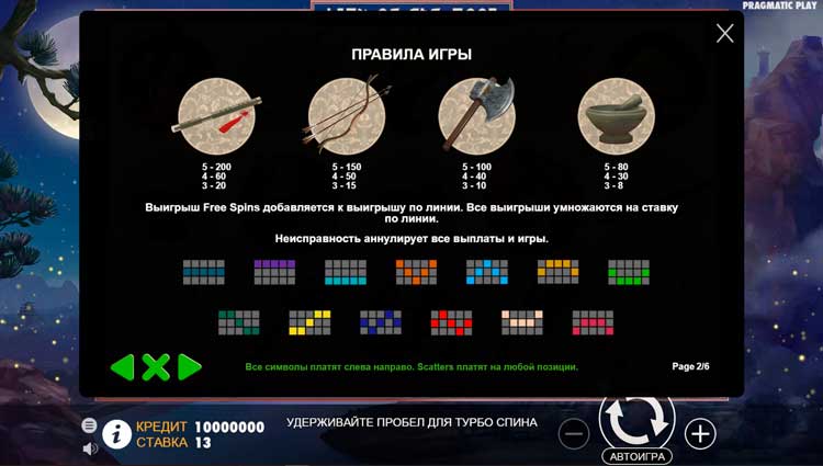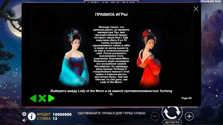 Таблица выплат Lady of the Moon