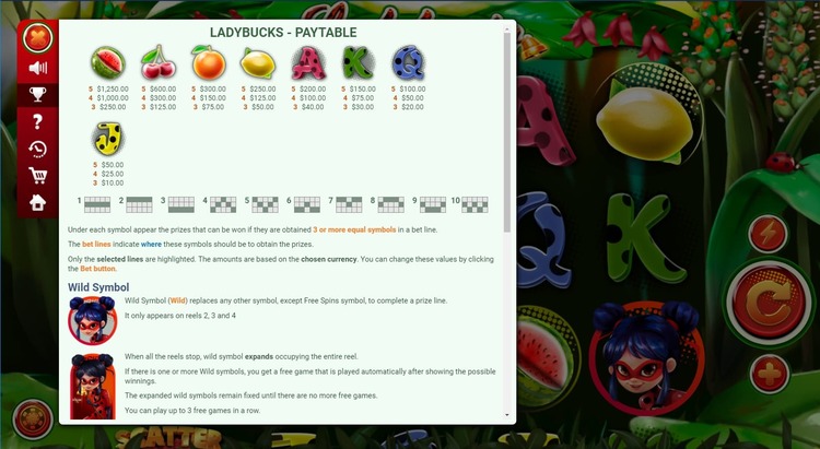 Таблица выплат Ladybucks