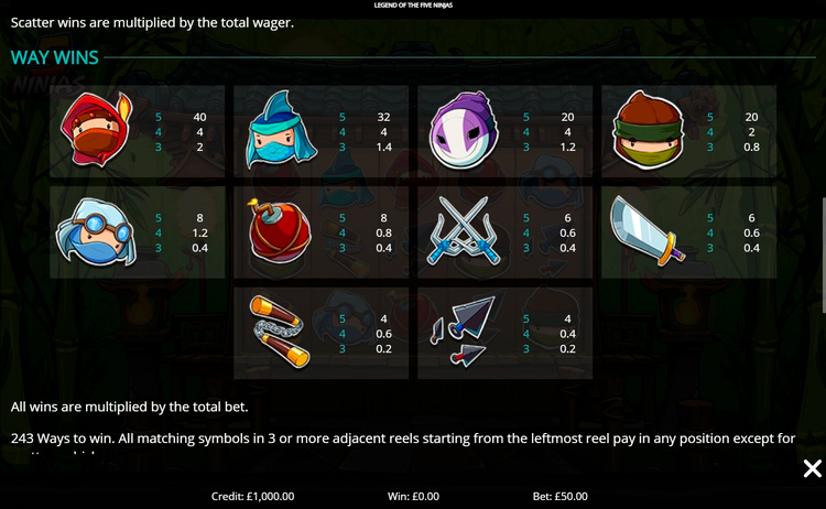 | Ниндзя в белой маске (Scatter) | 5 | 10 | 50 |
