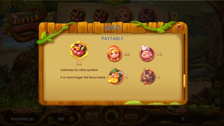 Таблица выплат Little Red Cap