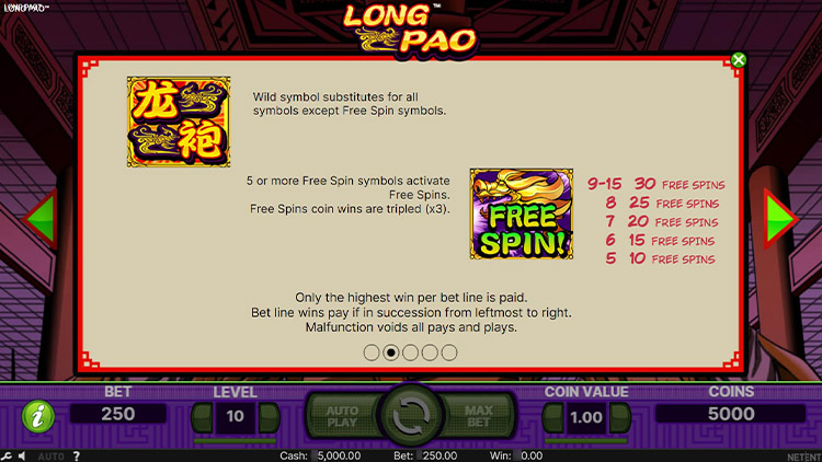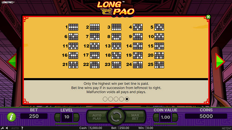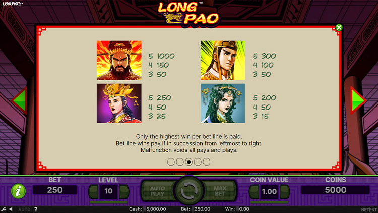 Таблица выплат Long Pao