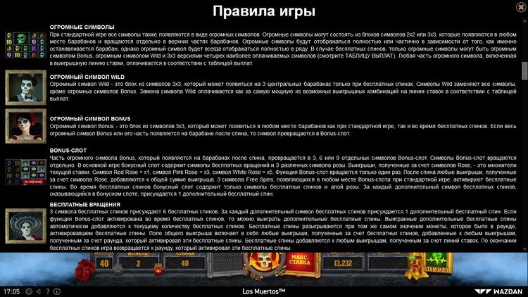Таблица выплат Los Muertos