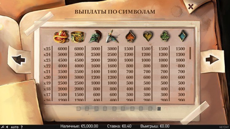 Таблица выплат Lost Relics