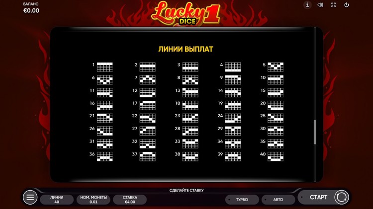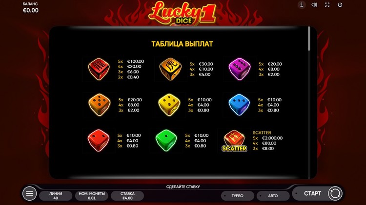 Таблица выплат Lucky Dice 1
