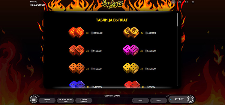 Таблица выплат Lucky Dice 3