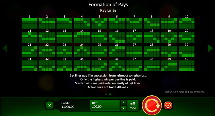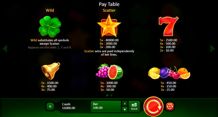 Таблица выплат Lucky Staxx 40 lines