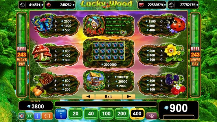 Таблица выплат Lucky Wood