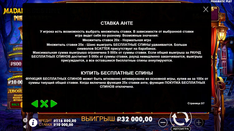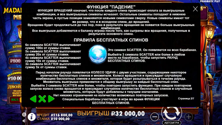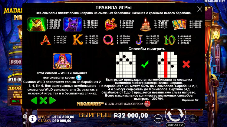 Таблица выплат Madame Destiny Megaways