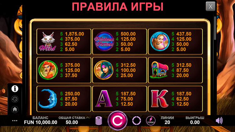 Таблица выплат Madame Fortune