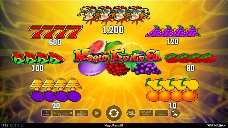 Таблица выплат Magic Fruits 81