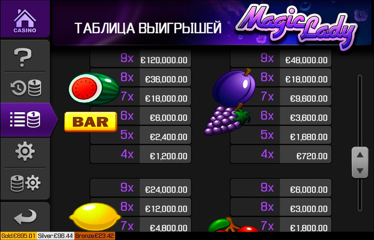 | Семерка | 2 400 | 4 800 | 12 000 | 36 000 | 72 000 | 240 000 |
