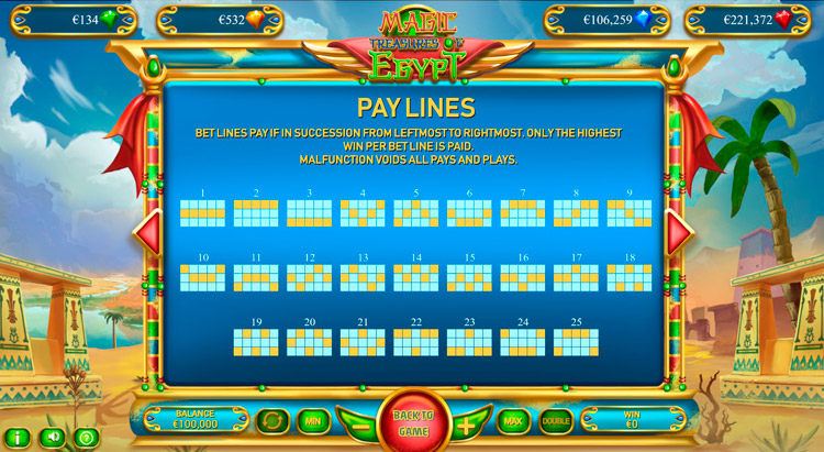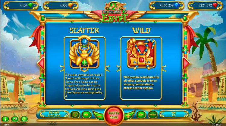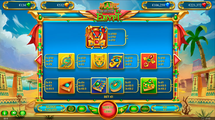 | Посох фараона (Wild) | 10 | 50 | 100 |