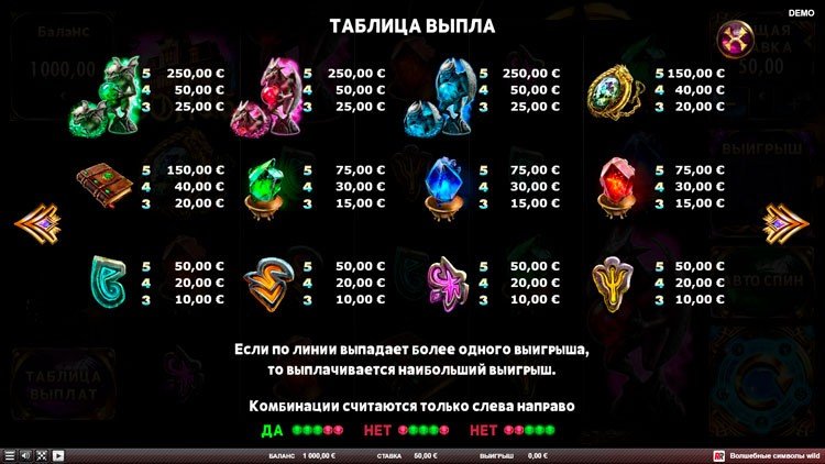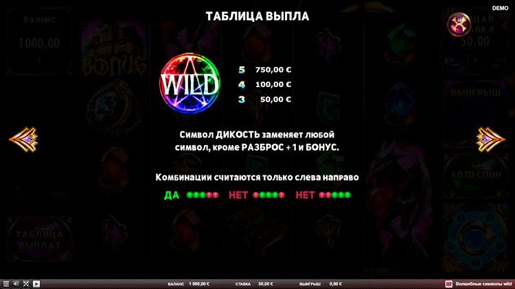 | Пиктограмма (Wild) | 50 | 100 | 750 |