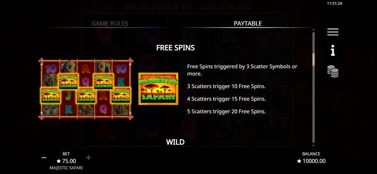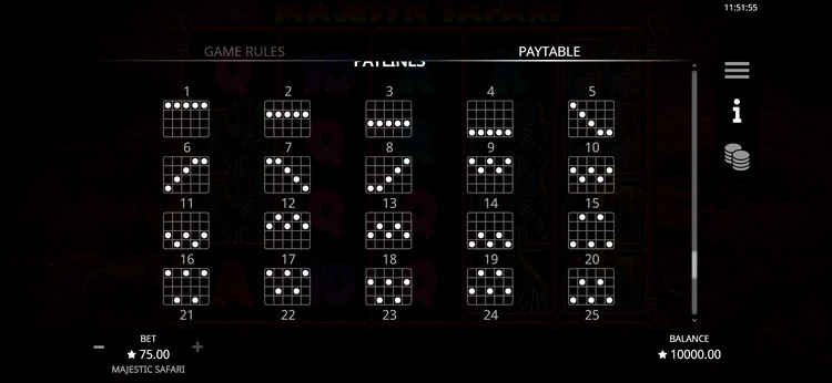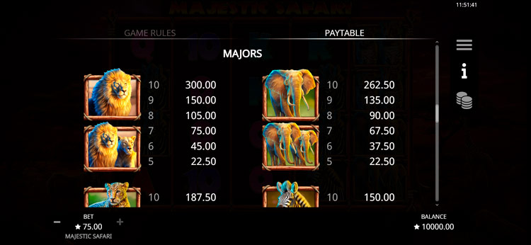 Таблица выплат Majestic Safari
