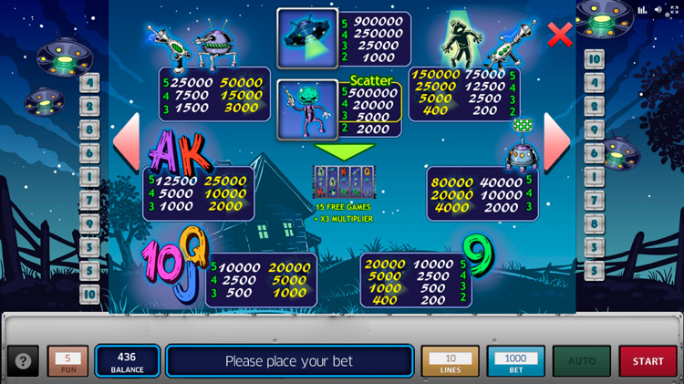 Таблица выплат Martians Attack