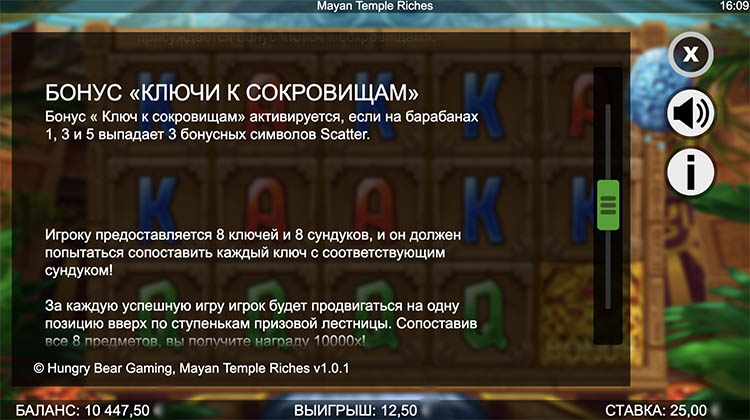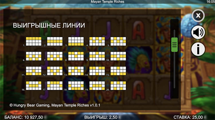 Таблица выплат Mayan Temple Riches
