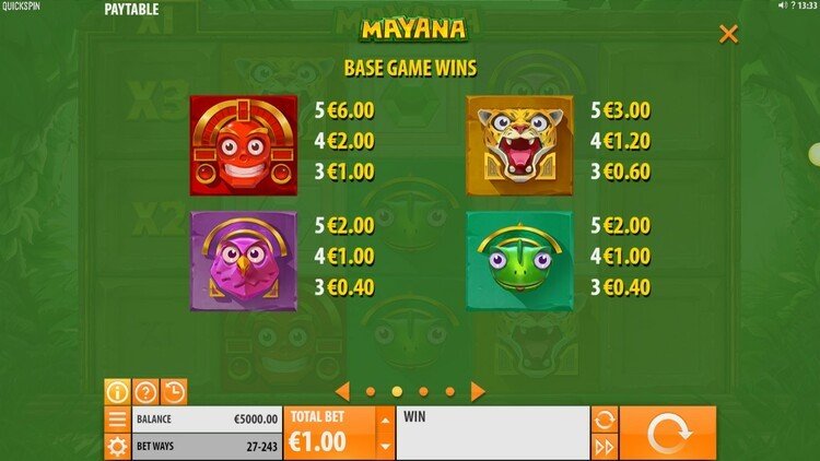 Таблица выплат Mayana