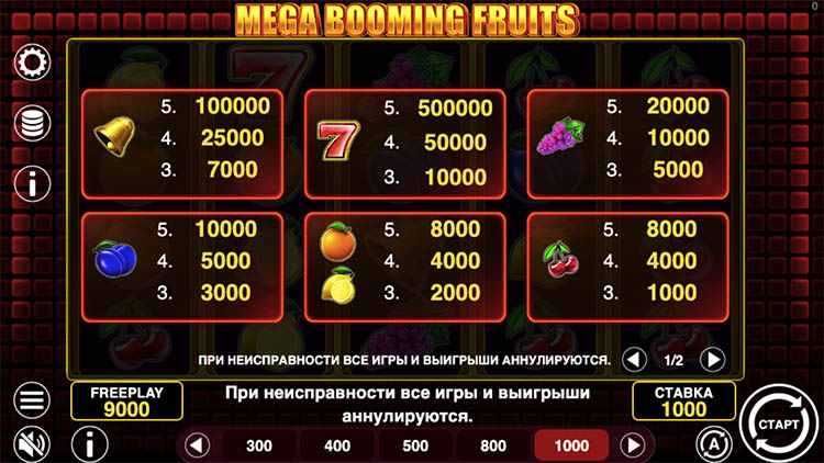 | Семерка | 10 000 | 50 000 | 500 000 |