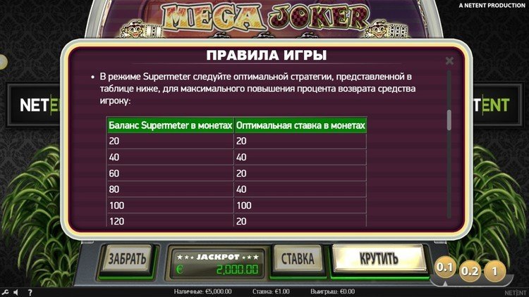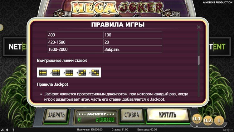 Таблица выплат Mega Joker